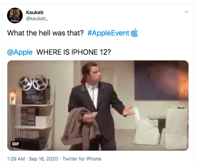Sudah menonton event Apple sampai selesai dan mata jadi merah, tapi iPhone 12 tak muncul. Foto: Twitter