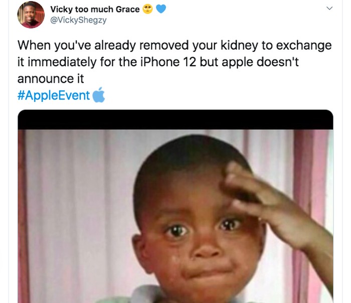 Mengheningkan cipta bagi mereka yang sudah menjual iPhone lama untuk membeli iPhone 12 yang ternyata belum diluncurkan. Foto: Twitter