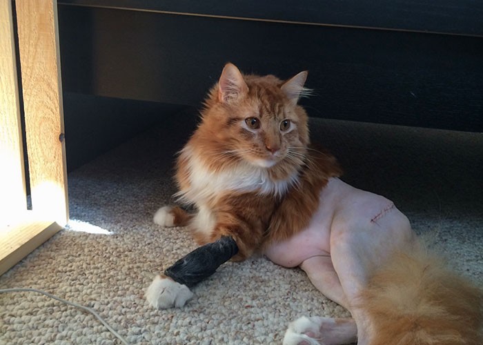 Kasihan, kucing ini habis luka kakinya. Bikin kucing terbiasa dengan kandangnya dengan iming-iming lebih banyak hadiah! Foto: Boredpanda
