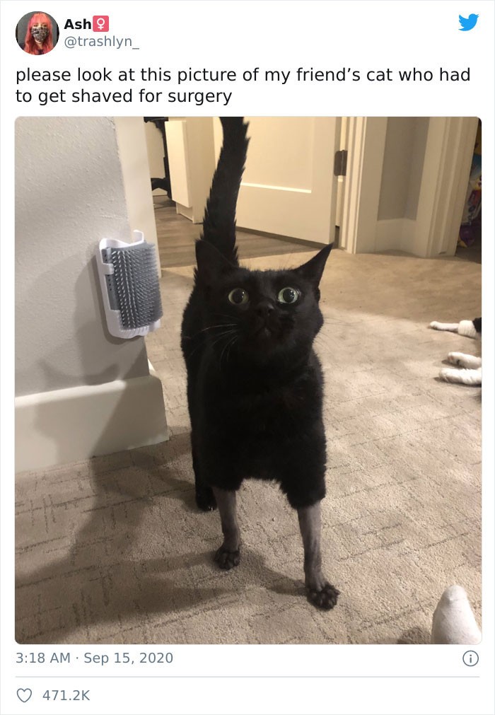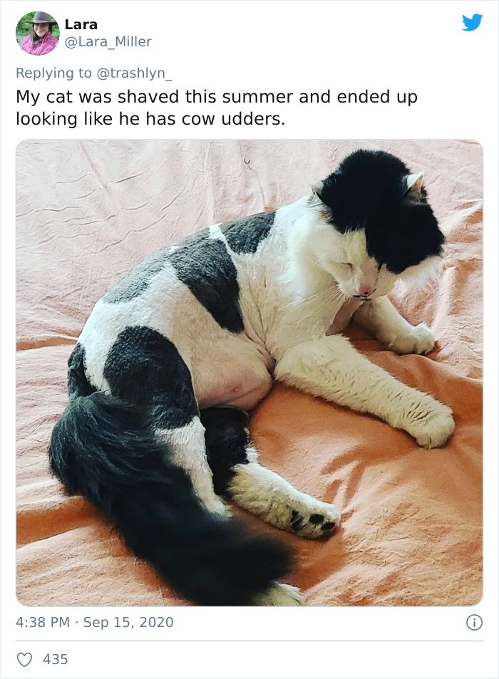Berawal dari postingan pengguna Twitter Ash yang membagikan foto kucing temanya di mana semua kakinya dicukur. Foto ini pun menjadi viral dan pengguna lain turun membagikan foto-foto kucingnya. Foto: Boredpanda