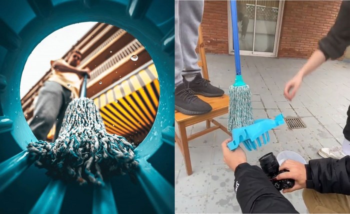 Bahkan alat pel lantai bisa loh digunakan. Foto: doc. Jordi Koalitic via Bored Panda