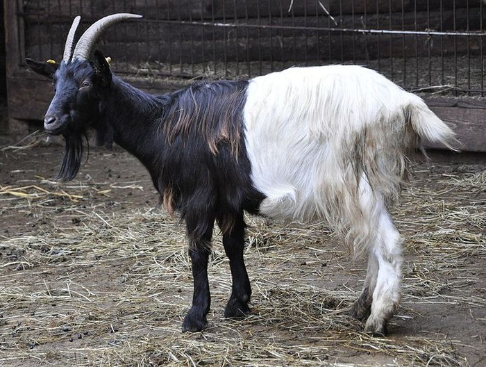 Seekor kambing dengan dua warna hitam putih dengan sisi yang berbeda. Foto: Brightside