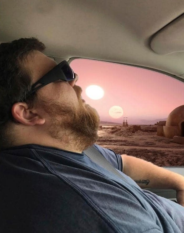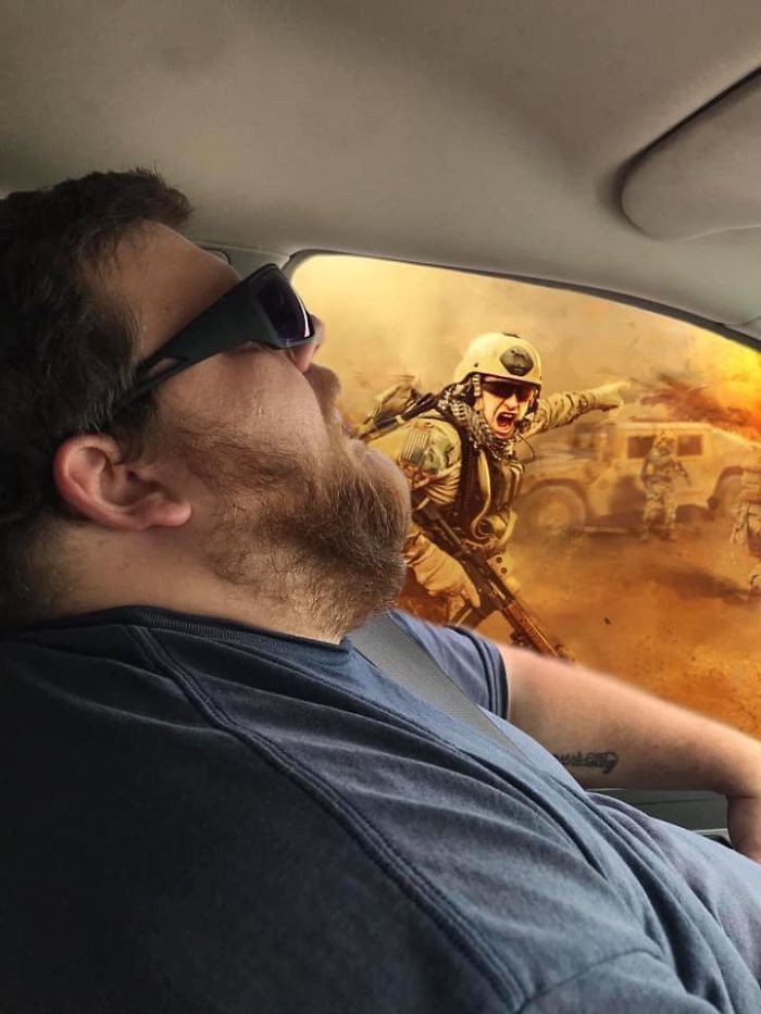 Adalah Sharea Overman, dia meminta untuk mengedit di jendela sehingga dirinya bisa menunjukkan kepada sang suami apa yang dia lewatkan saat tidur. Foto: doc. Bored Panda