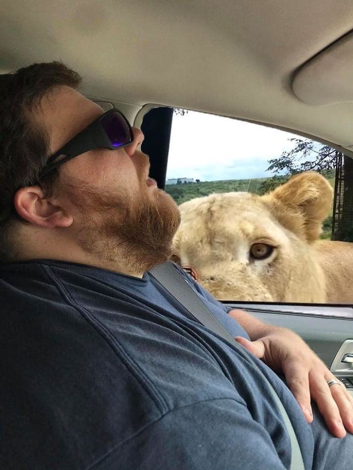 Dilirik oleh singa. Foto: doc. Bored Panda