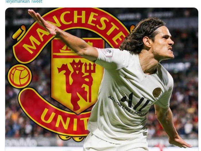 Netizen pun ramai-ramai mengedit saat Cavani berseragam Setan Merah. Foto: Screenshoot