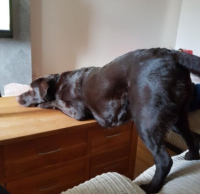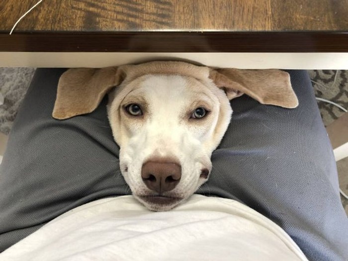 Setiap kali pemiliknya duduk untuk makan, anjing ini sering bertingkah seperti ini. Foto: Brightside