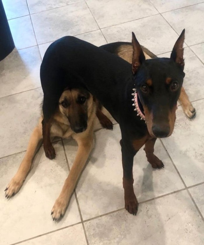 Dua anjing yang sedang bertingkah konyol. Foto: Brightside