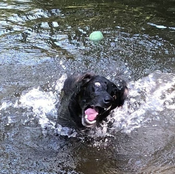 Saat dibawa ke sungai anjing ini bertingka aneh. Foto: Brightside