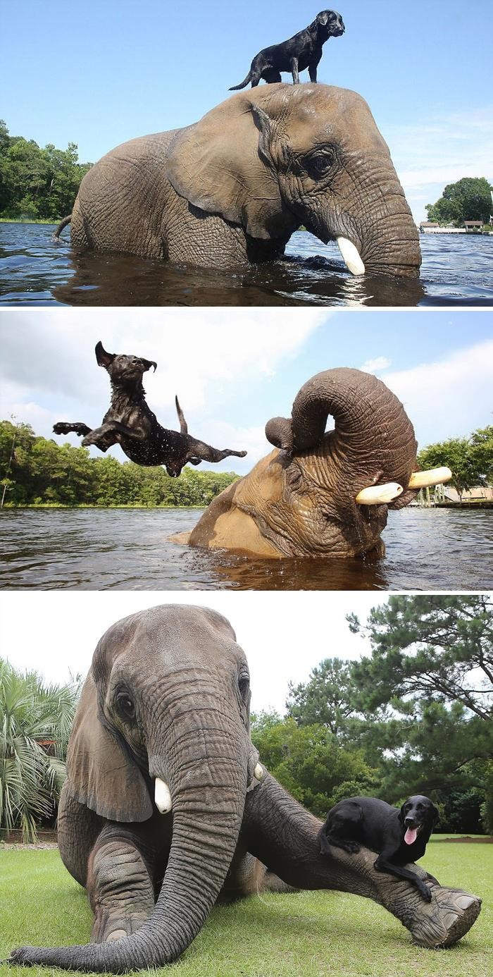 Si gajah dan anjing yang tampak asyik bermain. Foto: Boredpanda