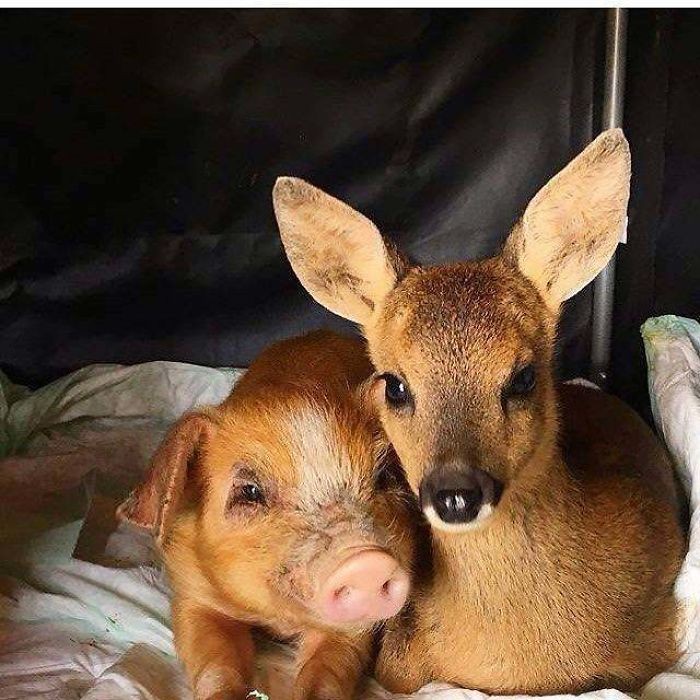 Persahabatan rusa dan babi. Foto: Boredpanda