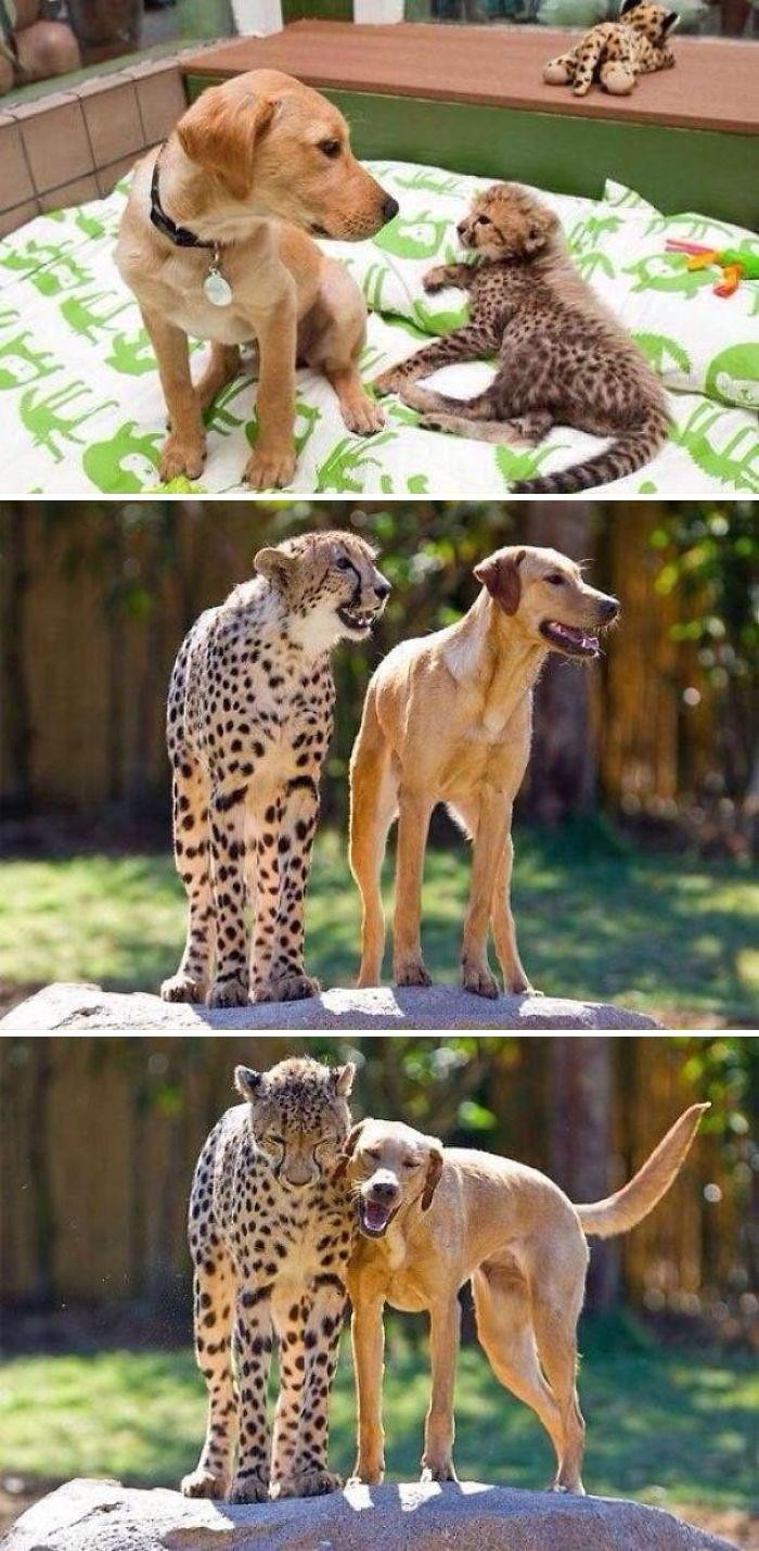 Tumbuh besar bersama anjing dan cheetah. Foto: Boredpanda