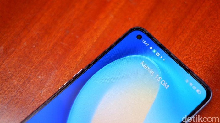 Ponsel ini punya punch hole di kiri atas, tempat kamera depan 32 MP. Foto: Adi Fida Rahman/detikINET