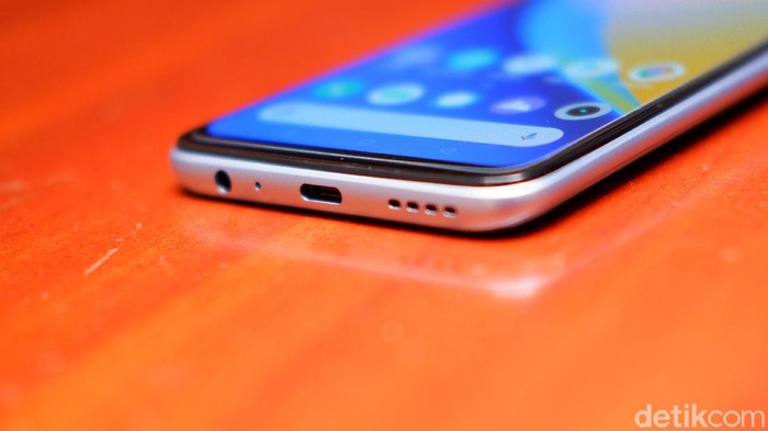 Bezel tebal di bawah layar lantaran port yang disediakan Realme 7 Pro lengkap, ada jack audio, USB Type C dan speaker. Foto: Adi Fida Rahman/detikINET