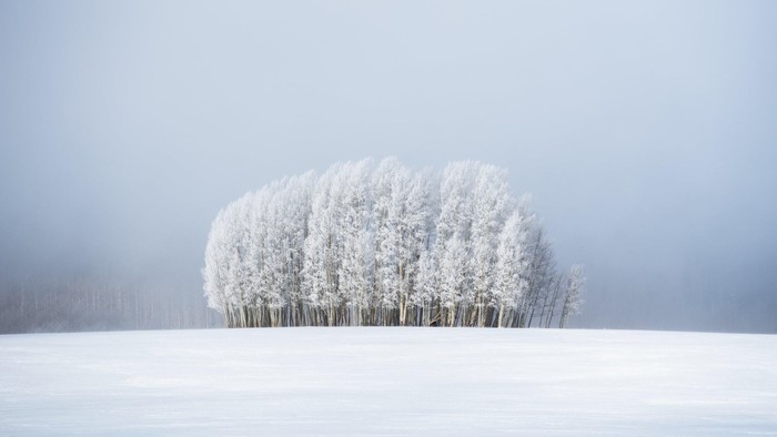'Trees & Fog' karya Preston Stoll memperlihatkan kabut yang menghiasi lanskap bersalju di Broomfield, Colorado. Foto: Preston Stoll/Weather Photographer of the Year 2020