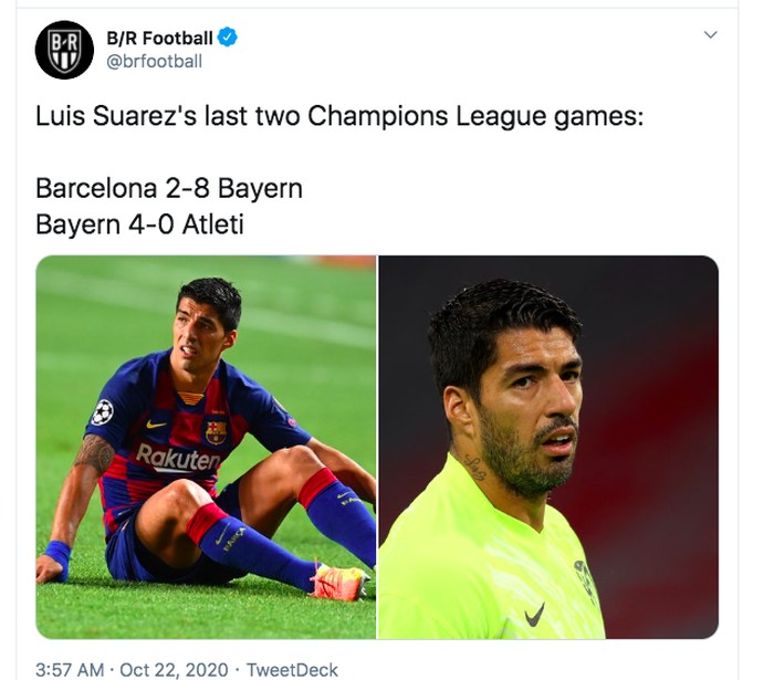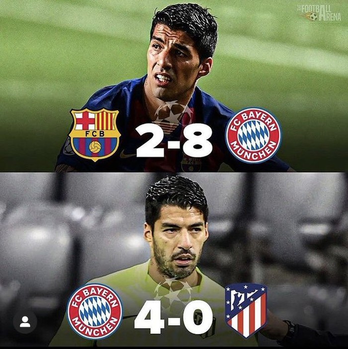 Merasakan dua kali kekalahan telak oleh Bayern membuat Suarez laris jadi bahan meme oleh netizen. Foto: istimewa