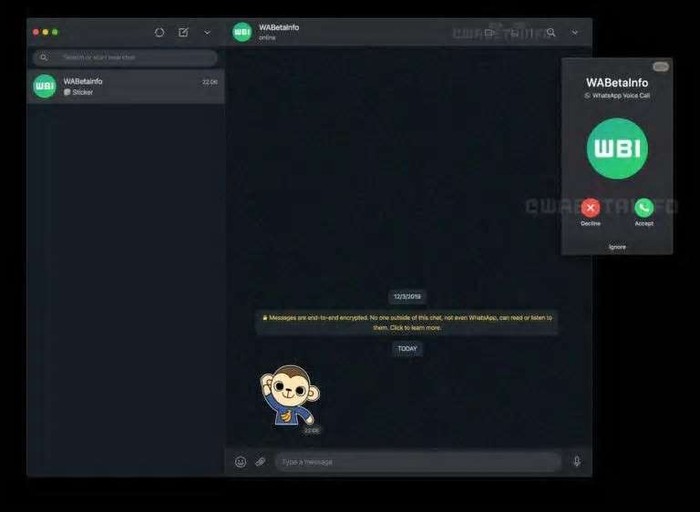Selain pesan, WhatsApp memastikan akan mengenkripsi atau membenamkan penyandian end-to-end panggilan. Foto: WABetaInfo