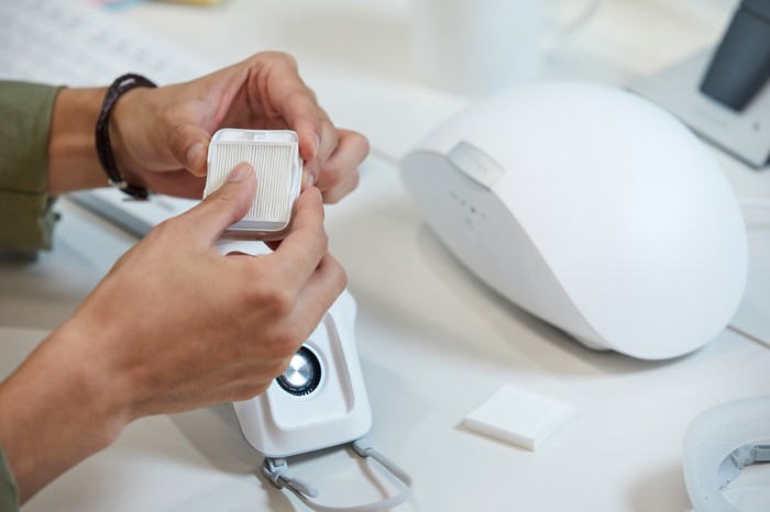 LG PuriCare Wearable Air Purifier memberikan perlindungan pengguna tak dapat dilepaskan dari dua filter H13 HEPA yang disandangnya. Foto: LG