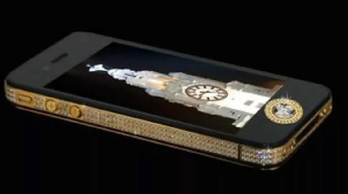 Stuart handal membuat HP sultan. Ini adalah Stuart Hughes iPhone 4S Elite Gold yang dijual USD 9.400.000 atau Rp 133,6 miliar dengan tawaran berlian 500 karat dan panel belakang serta logo iPhone terbuat dari emas 24 karat. Foto: wealthy gorilla