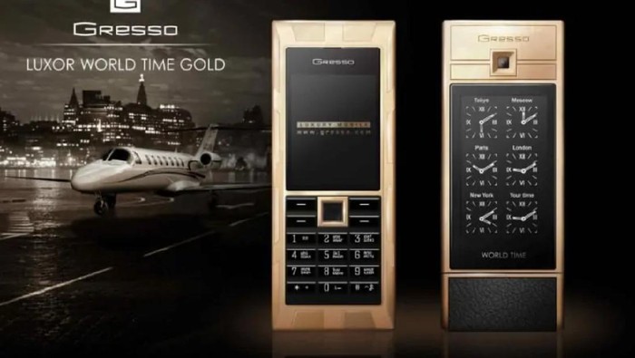 Kemewahan pun diperlihatkan Gresso Luxor Las Vegas Jackpot. Tak hanya terbatas, HP yang dijual USD 1.000.000 atau Rp 14,2 miliar ini terbuat dari 180 gram emas dan berlian hitam yang masing-masing 45,5 karat. Foto: wealthy gorilla