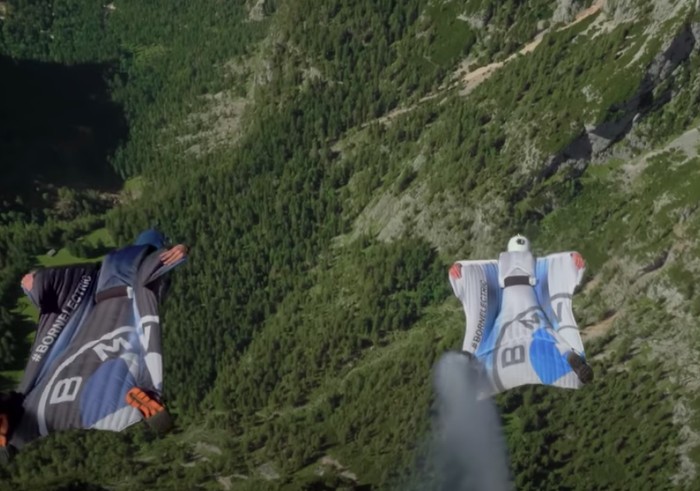 Memang uji coba harus dilakukan oleh para profesional karena wingsuit ini dapat mencapai kecepatan nyaris 300 km per jam, jauh lebih tinggi dari wingsuit biasa. Foto: BMW