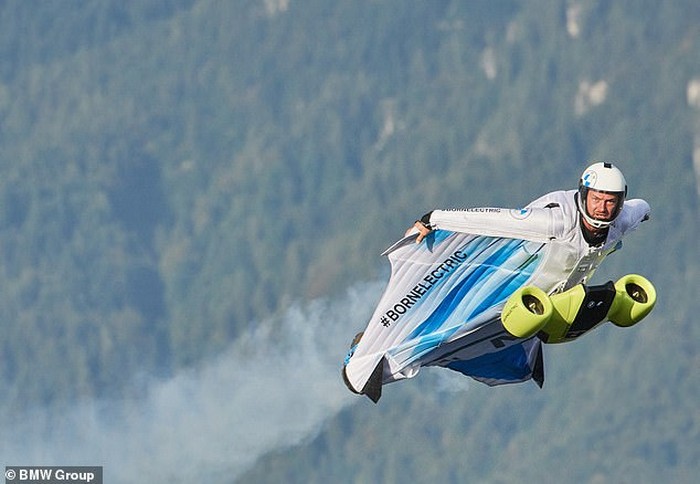 Mesin wingsuit itu mengandalkan tenaga dari baterai lithium 50 volt. Foto: BMW