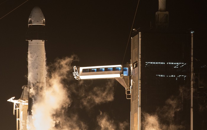 Sekarang astronaut hanya perlu menunggu 27 jam di orbit sebelum menyusul ISS dan memulai proses docking. Misi ini mencatat banyak sejarah, termasuk pertama kalinya roket buatan perusahaan swasta berhasil menjalankan misi operasional NASA ke ISS. Foto: AP/Chris O'Meara