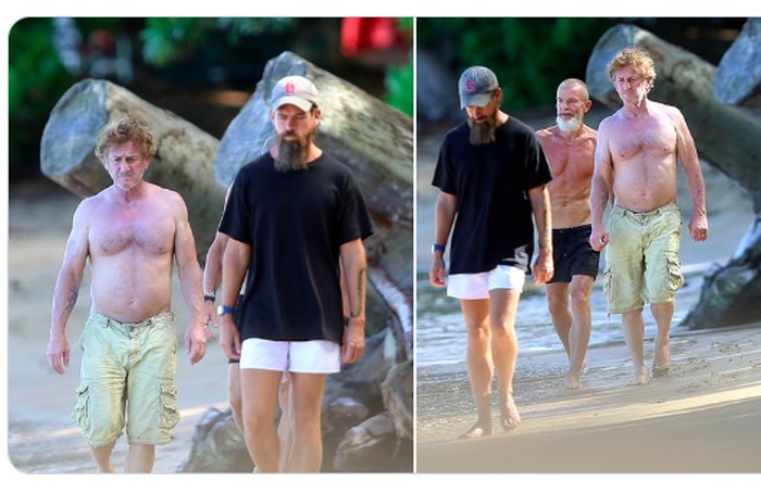 Tapi tampaknya Dorsey tak peduli dan senang dengan penampilannya yang baru ini. Ini saat dia tertangkap kamera bersama aktor Sean Penn bersantai di pantai. Foto: istimewa