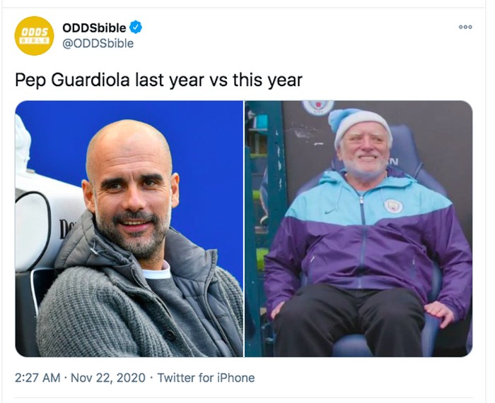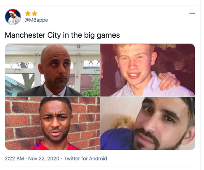 Pelatih maupun pemain City digambarkan dalam meme ini mendadak jadi letoy saat pertandingan besar. Foto: istimewa