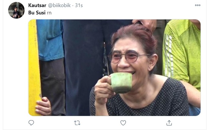 Bu Susi santai sambil ngopi. Foto: Twitter