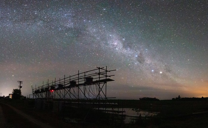 Pemenang pelajar kategori Ecology in Action adalah James Orr dengan karyanya 'Constant Flow'. Fotonya memperlihatkan galaksi Bima Sakti di atas instrumen eksperimen. Foto: James Orr/British Ecological Society Photography Competition