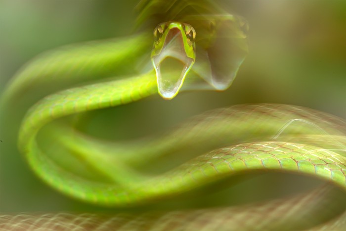 Pemenang kategori The Art of Ecology adalah Roberto GarcΓa Roa dengan karyanya 'Mouth'. Foto ini memperlihatkan ular Oxybelis yang membuka mulutnya untuk mengakuti musuh, meski tidak memiliki bisa. Foto: Roberto GarcΓa Roa/British Ecological Society Photography Competition