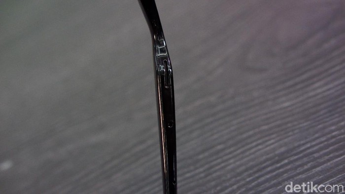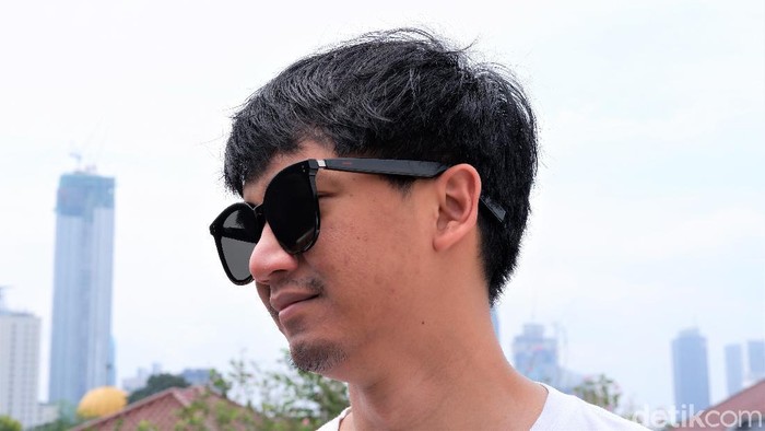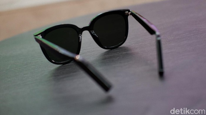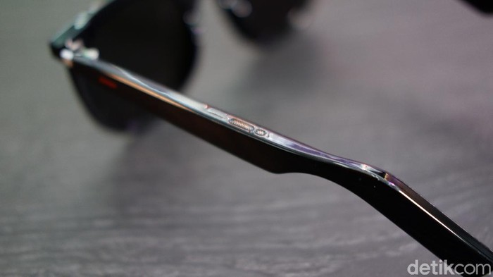 Tersemat speaker ganda dengan desain semi terbuka membuat Huawei Gentle Monster II bisa membentuk arah rongga suara dan transmisi pancaran yang terarah dari bidang suara di pelipis kanan serta kiri. Foto: Adi Fida Rahman/detikINET