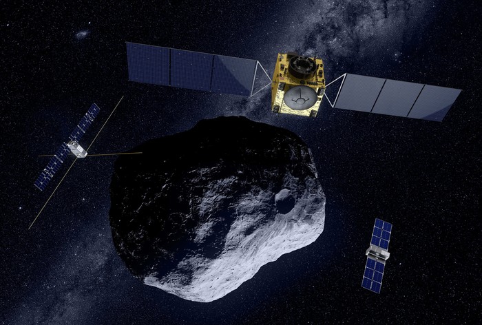 Hayabusa2 kemudian menembakkan proyektil ke permukaan asteroid itu, meraup material yang diperlukan untuk penelitian. Foto: JAXA