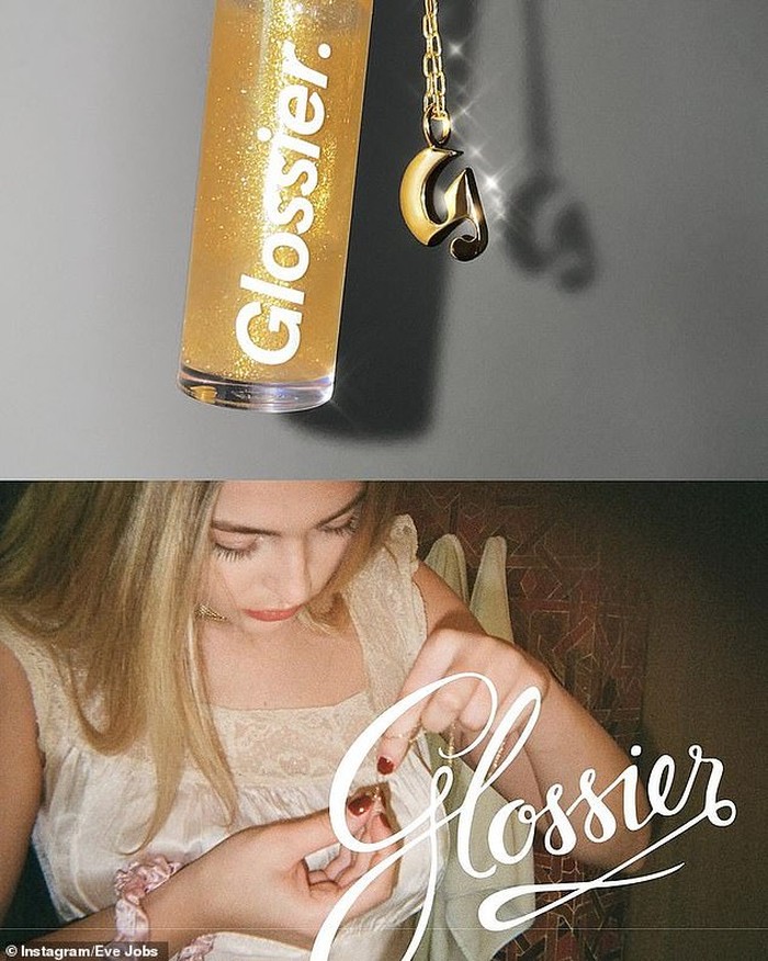"Biggest thanks to @emilyweiss& everyone at@glossier! Go check out the collection," tulis Eve Jobs di keterangan foto tersebut. Foto: Instagram