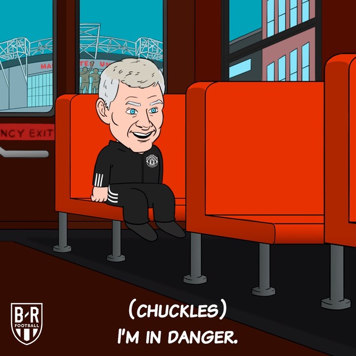 Ole Gunnar Solksjaer makin terancam posisinya sebagai pelatih MU, saya berada dalam bahaya katanya dalam meme ini. Foto: Twitter