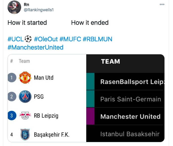 Berawal dari start yang baik di klasemen Liga Champions harus berakhir di ranking ketiga. Foto: Twitter