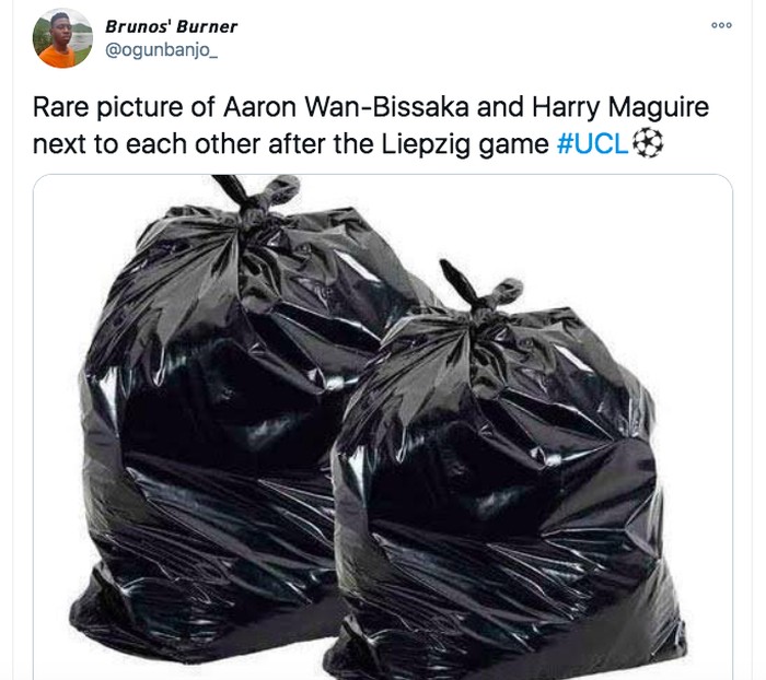 Bek Aaron Wan Bissaka dan Harry Maguire digambarkan sebagai sampah. Foto: Twitter