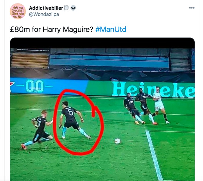 Performa payah Maguire yang terus menerus membuat harga pembeliannya terus dipertanyakan. Foto: Twitter