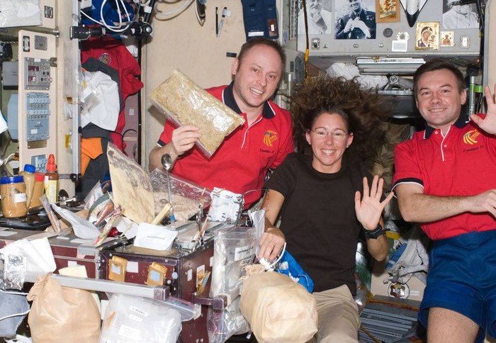 Anggota Expedition 18 menikmati makan malam Natal mereka di ISS pada tahun 2008. Foto: NASA