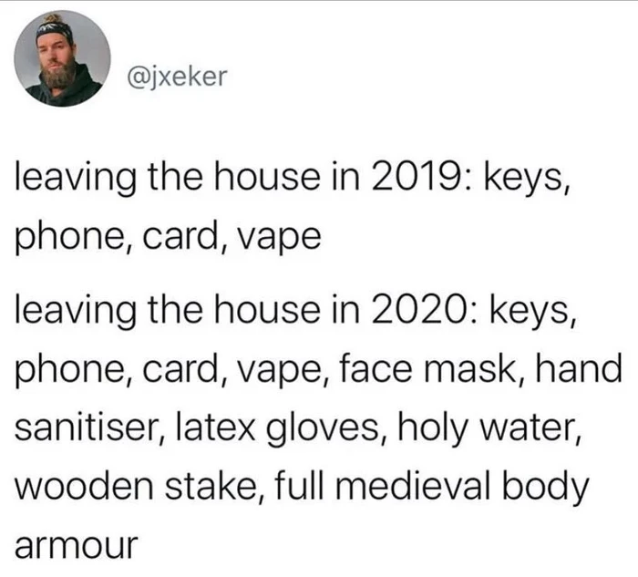 Setiap keluar rumah di tahun 2020 persiapannya jadi makin panjang. Foto: Twitter