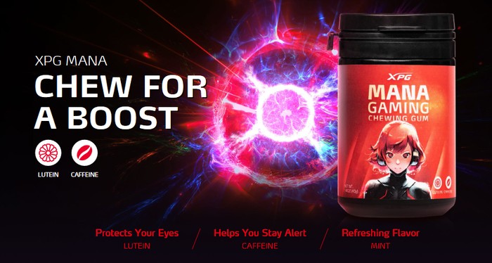 XPG dikenal dengan SSD dan case PC buatannya, tapi kali ini mereka merambah pasar baru yaitu permen karet khusus untuk gaming. XPG Mana Gaming mengandung luetin yang bisa menyehatkan mata dan kafein agar selalu terjaga. Foto: XPG