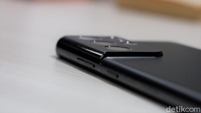 Sisi samping kananya terdapat tombol power dan pengaturan volume. Foto: Adi Fida Rahman/detikINET