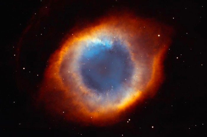 Kita hidup di planet yang mengorbit bintang yang awalnya kecil, kemudian berkembang menjadi sangat terang sebelum akhirnya meledak dan menyebarkan atom melintasi Bima Sakti. Kira-kira Matahari seperti pada foto nebula Helix. Gambar ini adalah salah satu yang terbesar dan terinci yang pernah dibuat. Pada jarak 650 tahun cahaya, nebula Helix adalah salah satu nebula planet terdekat ke Bumi. Foto: NASA/NOAO/ESA/Tim Nebula Hubble Helix/M. Meixner (STScI)/Rector TA (NRAO) via Forbes.