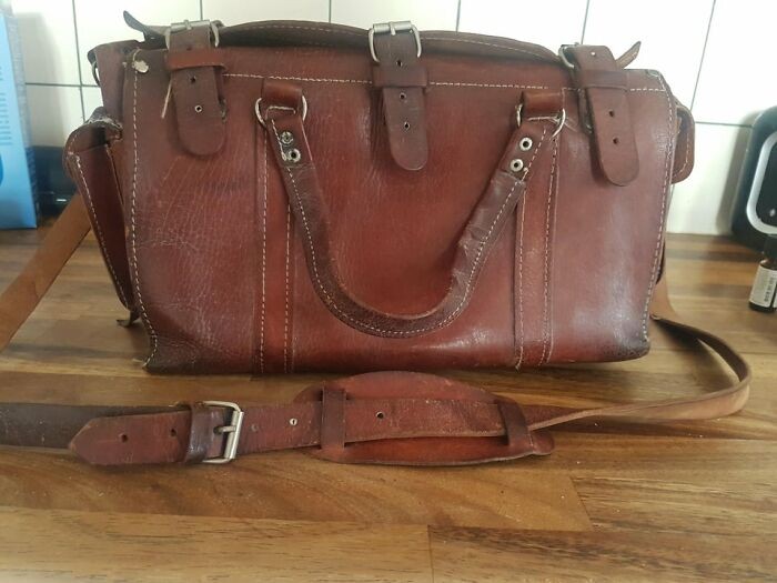 Tas bermerk Oxford yang disebut dibuat pada tahun 1880-an. βKakek saya menggunakannya ketika dia mulai masuk SMA di 1951,β tulis netizen yang memajangnya. Foto: Bored Panda