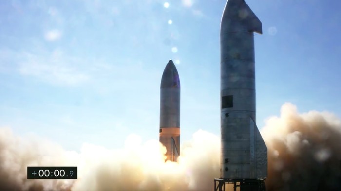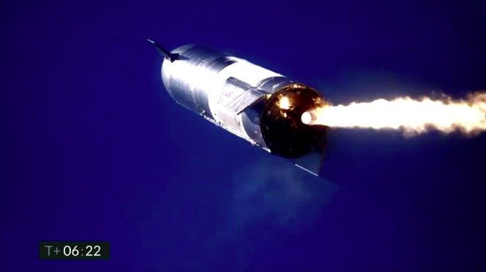 Setelah mencapai ketinggian tersebut, SN9 mematikan ketiga mesinnya dan mulai jatuh bebas ke Bumi (SpaceX)