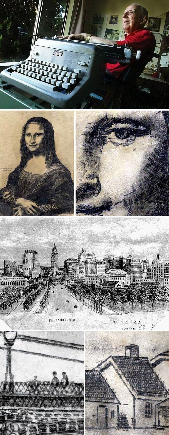 Lahir dengan penyakit Cerebral Palsy yang merupakan gangguan gerak yang mempengaruhi otot, gerakan dan ketrampilan motorik. Paul Smith dengan mesin tik-nya mampu hasilkan karya seni hanya dengan 1 jarinya saja. Seperti gambar Monalisa ini. Keren bukan? Foto: Bored Panda