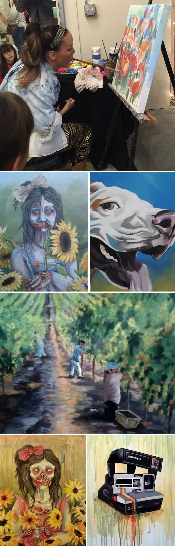 Dengan menggunakan mulut dan kakinya, wanita bernama Alana ini hasilkan karya seni gambar yang mengagumkan. Foto: Bored Panda