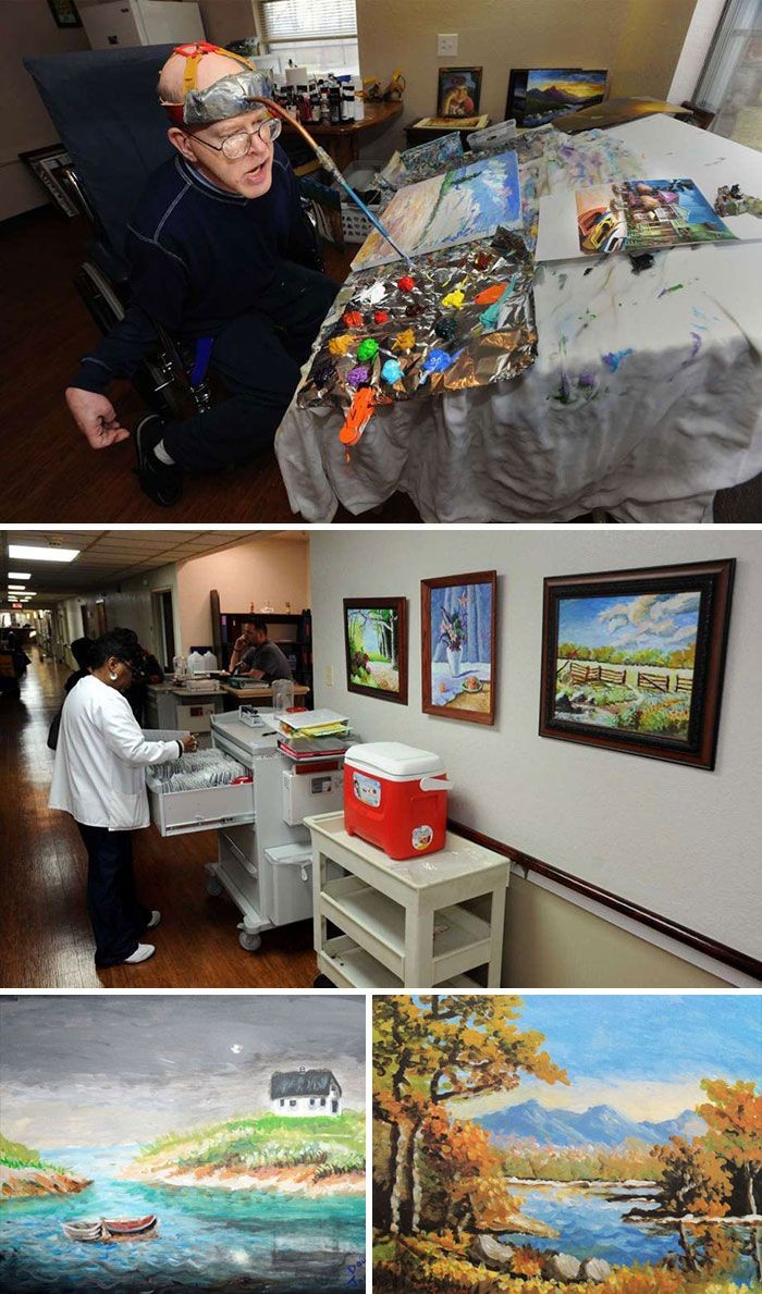 Memiliki kelainan Cerebral Palsy sejak lahir, pria bernama Doug Jackson mampu melukis hanya dengan kepalanya. Hasilnya pun menakjubkan sampai dipamerkan dibeberapa tempat seperti Rumah Sakit. Foto: Bored Panda
