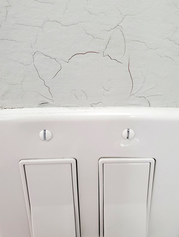 Retakan dinding membentuk kepala kucing. Foto: Bored Panda