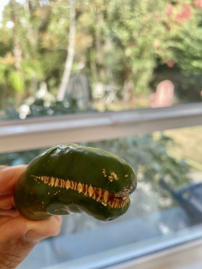 Bagian dalam pare membentuk muka senyum. Foto: Bored Panda